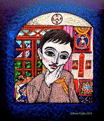 - “Looking Into The Mirror” ©Rima Fujita 2014; one of the drawings from “Rewa” a sexual-health education book for the Central Tibetan Administration, Dharamsala, India.
