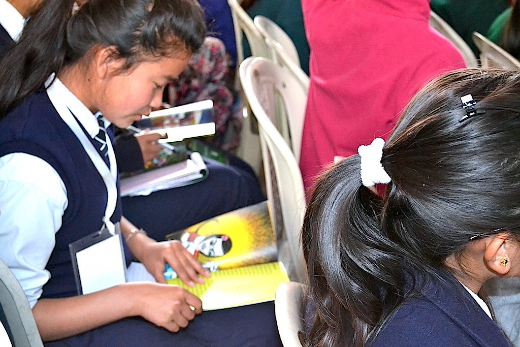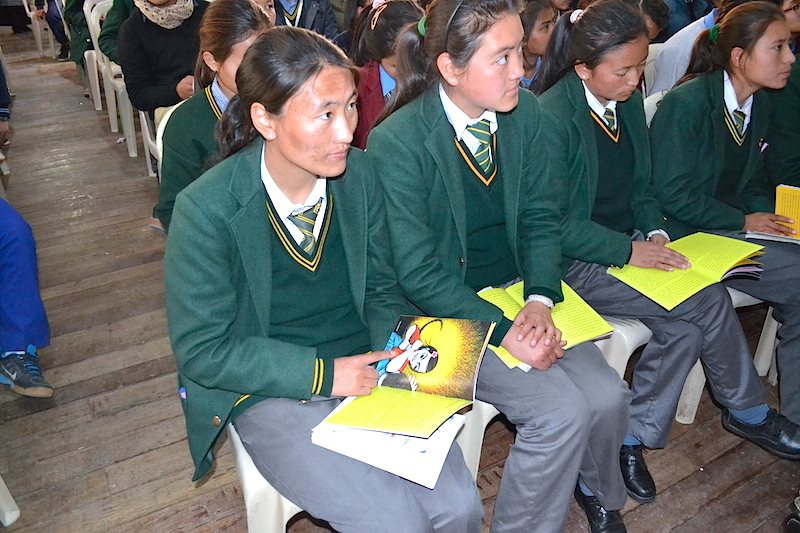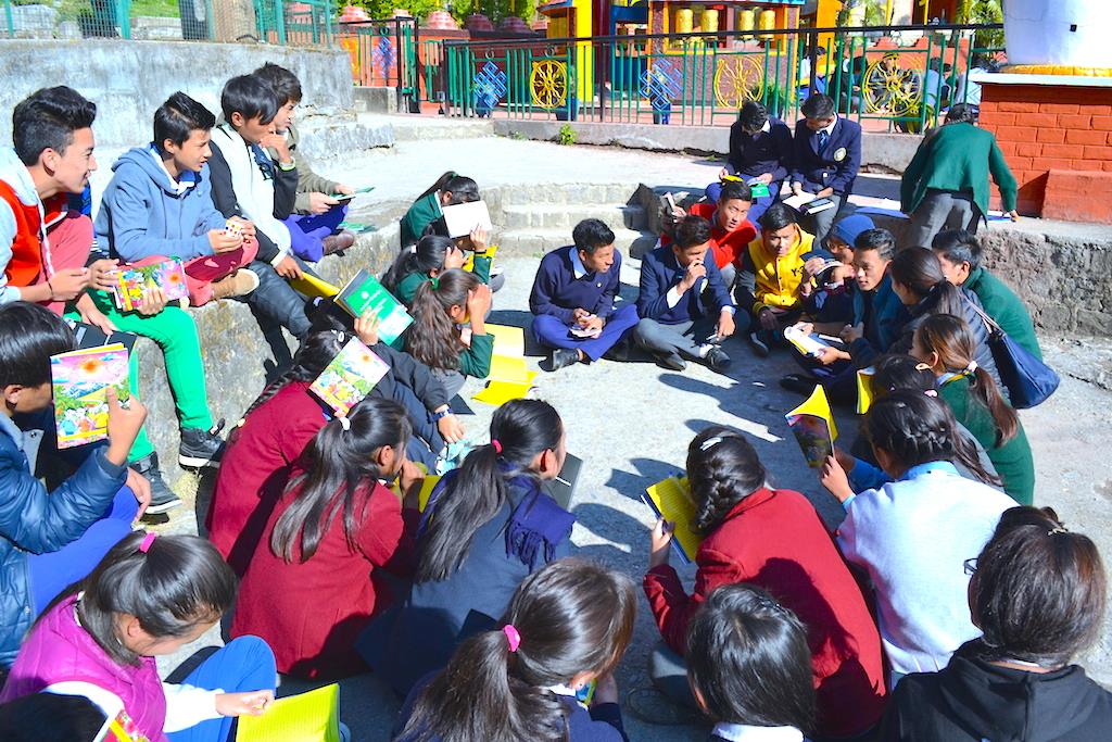 Young Tibetan students reading “Rewa” during the sexual-health education workshop at TCV, Dharamsala, India on Jan.10 2015